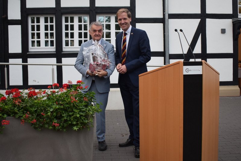 Beim anschließenden Sommerempfang im Garten des Pfarrheimes der katholischen Kirchengemeinde St. Lambertus mit rund 200 Gästen rückte Landrat Dr. Schulze Pellengahr insbesondere das Ehrenamt in den Mittelpunkt seiner Ansprache. Die vielfältigen Herausforderungen unserer Zeit machten die Arbeit der vielen ehrenamtlich Engagierten besonders wertvoll und trügen maßgeblich dazu bei, dass der Kreis Coesfeld für alle Bürgerinnen und Bürger ein guter und sicherer Ort zum Leben sei. Im Anschluss nahm er die Herausforderungen in Fragen des Zivil- und Katastrophenschutzes besonders in den Blick und deren Aktualität angesichts der veränderten geopolitischen Sicherheitslage.